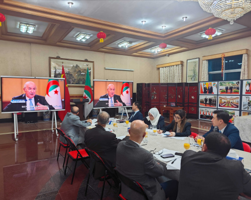 2025年11月2日,驻阿尔及利亚使馆举办媒体学者座谈会,驻阿尔及利亚使馆临时代办赵平盛、阿主流媒体记者、政治经济领域知名学者等出席。