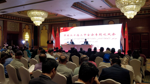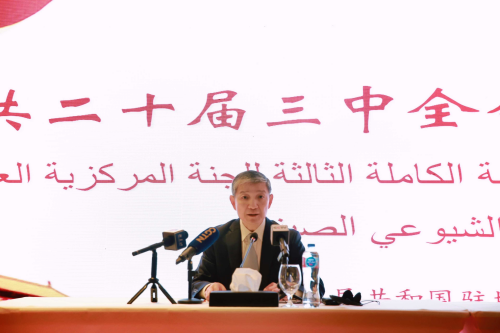 2024年7月24日,驻埃及使馆举办中共二十届三中全会专题吹风会,驻埃及大使廖力强全面介绍会议精神。埃及议会领导人、政党领导人、前政要、智库专家、阿盟秘书处代表以及中埃媒体记者近80人与会。