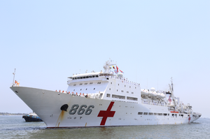 2017年10月19日,执行“和谐使命-2017”任务的中国海军和平方舟医院船抵达罗安达港,开始对安哥拉为期8天的友好访问。驻安哥拉大使崔爱民、安国防部代表多纳西门多海军少将、驻安使馆工作人员、旅安华侨华人、中资企业代表等600余人到码头欢迎并举行隆重的欢迎仪式。多纳西门多少将代表安国防部热烈欢迎和平方舟访安,称此访充分体现了两国和两军之间的友好关系,安方将全力做好访问接待和诊疗配合工作,确保访问取得圆满成功。