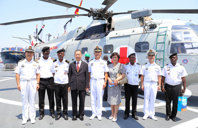 欢迎仪式后,崔大使、多纳西门多少将等双方主要欢迎人员登舰参观,“和谐使命-2017”任务指挥员管柏林少将介绍了此访目的、船上主要设施和接诊能力等。安主流媒体全程进行了报道。