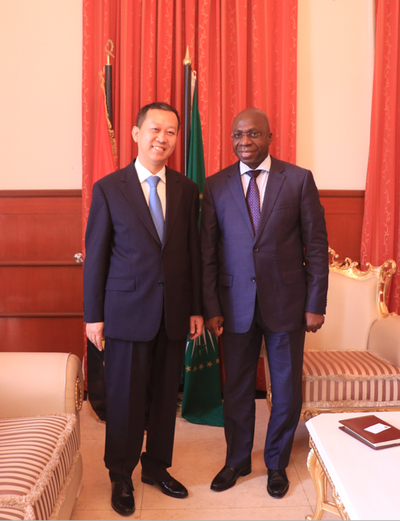 2017年12月1日,驻安哥拉大使崔爱民会见安外交部外交国务秘书安东尼奥。