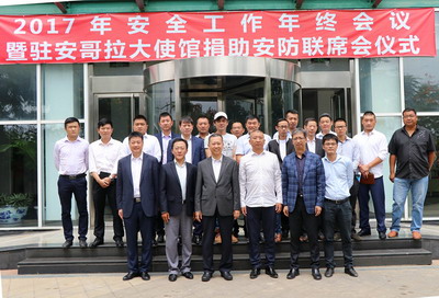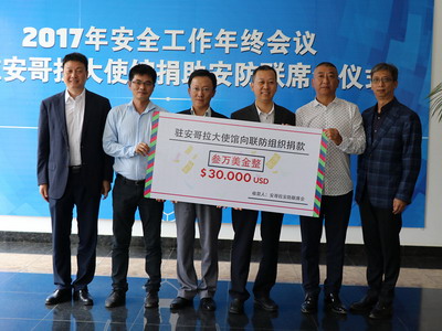 2017年12月12日,驻安哥拉使馆召开2017年安全工作年终会议暨捐助安防联席会仪式。驻安哥拉大使崔爱民、安哥拉中国总商会许宁会长、安防联席会潘景健秘书长、安防联席会成员组织和中资企业商会代表共30余人出席。