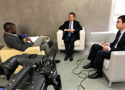 2018年1月12日,驻安哥拉大使崔爱民就中安建交35周年接受安ZIMBO电视台专访。崔大使全面梳理了中安关系发展历程,介绍了两国各领域务实合作现状,描绘了双方下阶段合作蓝图,并就中安两国经贸合作、人员交往和双边合作协议等问题回答了主持人提问。