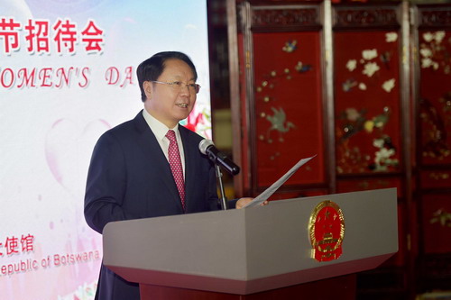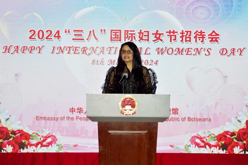 2024年3月8日,驻博茨瓦纳大使王雪峰和夫人童新在使馆举办2024年“三八”国际妇女节招待会。博劳工与内政部长莫凯蒂等博政府高级官员、博各界妇女代表、驻博使团及中国援博医疗队、博茨瓦纳大学孔子学院、中资企业和侨界妇女代表等150余人出席。