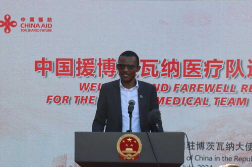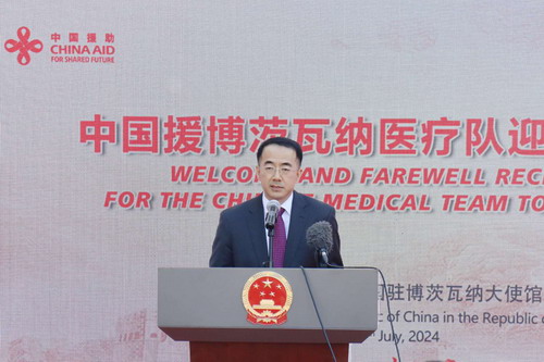2024年7月10日,驻博茨瓦纳使馆举办中国援博医疗队迎送招待会,驻博茨瓦纳使馆临时代办郭振光和博卫生部分管基层卫生健康事务的负责人拉莫察巴巴出席并致辞。博卫生部和外交部高级官员,第16、17批援博医疗队队员,中资企业代表,旅博侨胞及媒体代表共约100人参加。