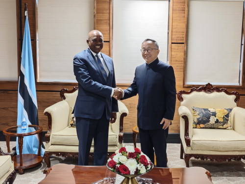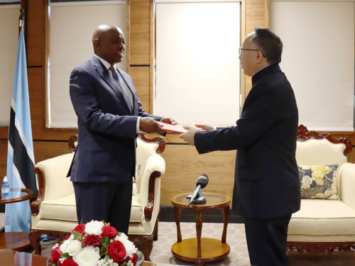 2024年8月26日,新任驻博茨瓦纳大使范勇向博总统马西西递交国书。博代外长霍法莫迪莫及驻博使馆主要外交官出席。