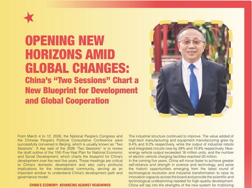 2026年3月4日至12日,全国人民代表大会和中国人民政治协商会议胜利召开,审议通过《政府工作报告》和《国民经济和社会发展第十五个五年规划纲要》,为今年和未来五年中国经济发展描绘详细蓝图。两会不仅对中国国内发展至关重要,而且对世界也具有深远意义,是了解中国发展道路和治理模式的重要窗口。