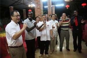 “民以食为天”。傍晚,欢庆的人们来到布琼布拉有名的中餐馆“王朝饭店”,欣赏由布中友协与布大孔院师生准备的精彩文艺表演,并共同品尝来自东方的珍馐佳肴。友协的成员多数曾经有过在中国工作、学习、生活的经历,做法多样、风味丰富的中餐自然是他们“中国记忆”中不可或缺的符号。在这异国他乡,筷子可以取代刀叉,中文也是“官方语言”。中文老歌新唱竟是布人的腔调,非洲风情热舞也有华人的婀娜。郁大使在致辞中表示:“这些年,亲眼见证了布中友协不断壮大、中布友谊日益深厚,我倍感欣慰。诚愿双边关系历久弥新,中布友谊地久天长!”激动之余,他还亲献一首《滚滚长江东逝水》,博得满堂喝彩。