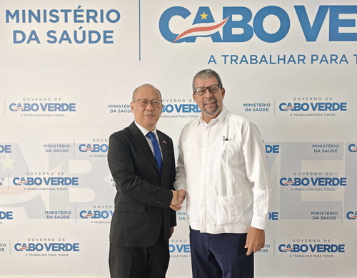 2025年9月9日,驻佛得角大使张洋拜会佛得角卫生部长菲格雷多,双方就促进两国卫生健康领域合作交换意见。第21批援佛医疗队队长李素萍等在座。