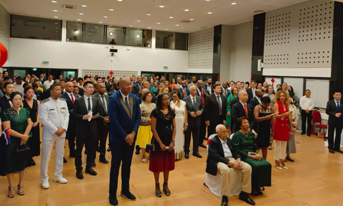 2025年9月29日,驻佛得角大使张洋出席使馆举办的庆祝中华人民共和国成立76周年招待会。佛前总统、内政部长、基础设施部长、总统夫人、总理夫人、国民议会议员、外交与合作国秘、总检察长等佛各界代表,各国驻佛使节,中资机构、华侨华人代表等400余人出席。
