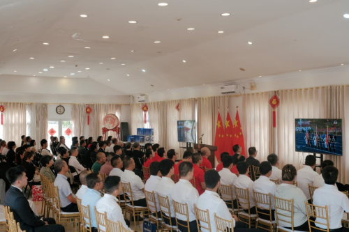 2025年9月3日,驻冈比亚使馆组织在冈华侨华人和中资机构代表齐聚一堂,共同观看纪念中国人民抗日战争暨世界反法西斯战争胜利八十周年大会和阅兵式,驻冈比亚使馆临时代办赵尚森出席并致辞。