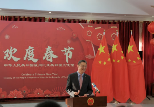 2026年2月10日,驻冈比亚使馆举办2026年新春招待会。驻冈比亚大使刘晋,在冈华侨华人、中资机构代表等150人欢聚一堂,共庆马年新春。
