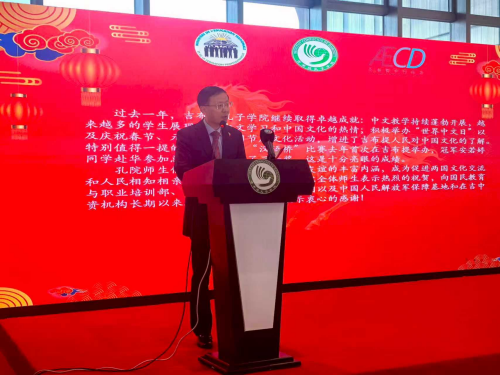 胡大使在致辞中充分肯定孔院过去一年取得的成绩,感谢吉各界对孔院的支持,并表示,中方愿以“中非人文交流年”为契机,与吉方深化中文教育等合作,推动中吉人文交流迈上新台阶,巩固两国人民深厚友谊。