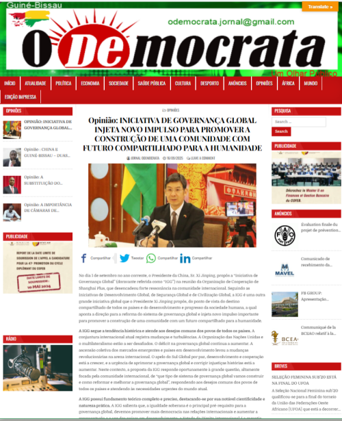 2025年9月16日,驻几内亚比绍大使杨仁火在几比主流媒体《民主报》发表题为《全球治理倡议为推动构建人类命运共同体注入新动力》的署名文章,深入宣介习近平主席近期提出的全球治理倡议。全文如下: