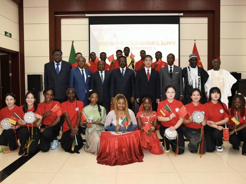2025年9月25日,驻喀麦隆使馆举行庆祝中华人民共和国成立76周年暨驻喀大使徐永到任招待会。喀政府代表、对外关系部部长级代表姆巴宇,国防部长阿索莫,劳动和社会保障部长奥沃纳,经济计划和领土整治部长奥斯曼,国民议会副议长迪奥多尔等政要及各界友人,各国驻喀使节、国际组织驻喀代表等200余人出席。