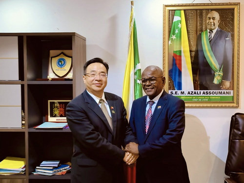 2025年9月4日,驻科摩罗大使黄峥拜会科摩罗内政、权力下放、国土管理及协调国家机构关系部长阿苏马尼,双方就公共安全和执法交流合作交换意见。