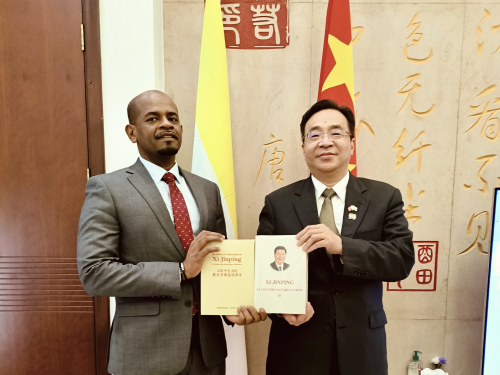 会见后,黄大使向努尔赠阅《习近平谈治国理政》和《习近平总书记教育重要论述讲义》。