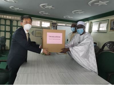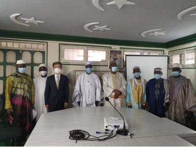 2020年8月18日,驻科特迪瓦大使万黎同科伊玛目、清真寺和伊斯兰事务高级委员会(COSIM)主席特拉奥雷在特什维尔大清真寺共同出席使馆向COSIM捐赠抗疫物资交接仪式,10多位COSIM 成员出席。