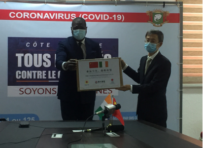 2020年8月18日,驻科特迪瓦使馆向科健康和公共卫生部转交中国红十字会捐赠的抗击新冠肺炎疫情医疗物资,驻科特迪瓦大使万黎与科健康和公共卫生部部长代表、办公厅主任阿卡出席,并共同签署物资交接证书。科外交部亚太司司长萨拉等在座。