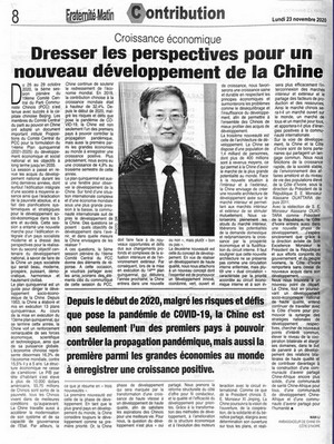 2020年11月23日,驻科特迪瓦大使万黎在科官方报纸《博爱晨报》发表署名文章《擘画新蓝图,开启新征程》,宣介中国共产党十九届五中全会精神,全文如下: