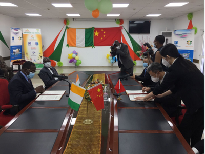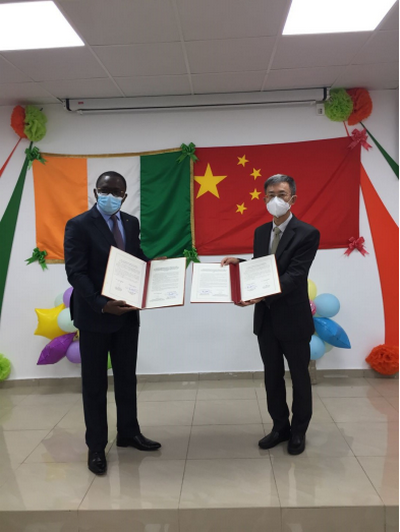 2020年12月3日,驻科特迪瓦大使万黎和科体育部长丹奥出席在科特迪瓦国家体育局举行的援科奥林匹克体育场项目交接证书签署仪式。
