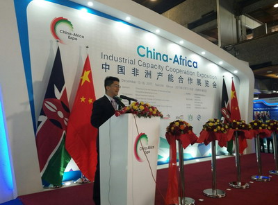 2017年12月13日,驻肯尼亚使馆临时代办李旭航出席中国非洲产能合作展览会开幕式并致辞。肯工业贸易合作部部长阿丹·穆罕默德、肯国家工商会主席孔康褒、肯投资促进局局长摩西·伊奇亚拉,中国贸促会、中展集团、中非发展基金、参展中资企业相关负责人,部分非洲国家驻肯使节等出席开幕式。