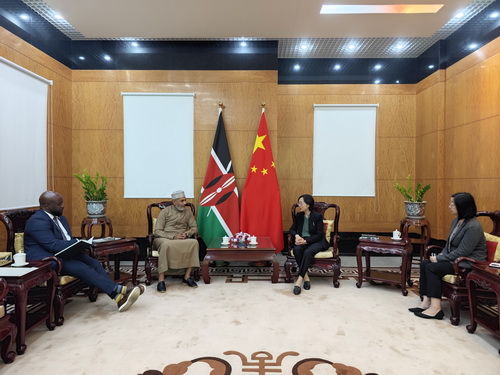 2025年5月16日,驻肯尼亚大使郭海燕会见蒙巴萨郡郡长纳西尔一行。