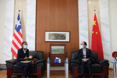 近日,驻利比里亚大使任义生分别拜会利前总统瑟利夫并会见利海星基金会执行主任蒂娜、利比里亚大学校长尼尔森。