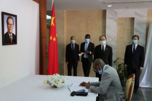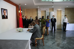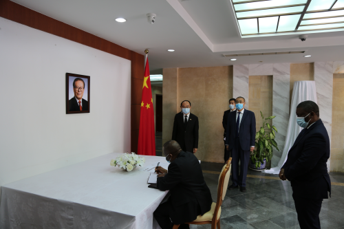 2022年12月5日,利比里亚代总统兼司法部长迪恩赴驻利比里亚使馆吊唁江泽民同志逝世,利代外长科瓦及财政、卫生、新闻、商工、邮电和教育部长等利政府内阁全体成员陪同。驻利比里亚大使任义生陪同吊唁。