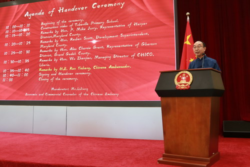 任大使在致辞中表示,近年来中利经贸、基础设施、矿业、农林渔业等领域务实合作成效显著,人文交流卓有成效。和平稳定是保障,发展是基础,学生是未来。中国政府一贯支持利教育事业,将继续深化与利在教育、人力资源等领域的互利合作,支持利教育事业取得新发展。任大使对河南国际利比里亚公司承建的托比维尔小学项目表示充分肯定和赞赏。