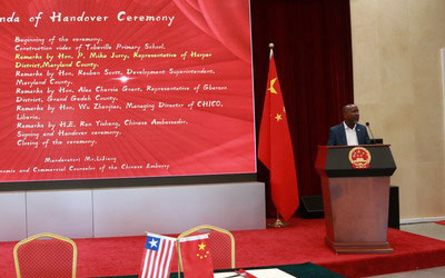 马里兰州哈珀区众议员卓雷在致辞中回顾了中利双边关系的顺利发展,赞扬中国政府多年来对利比里亚的帮助和支持,感谢使馆捐赠的哈珀市第一所公立小学,为孩子们提供受教育机会。