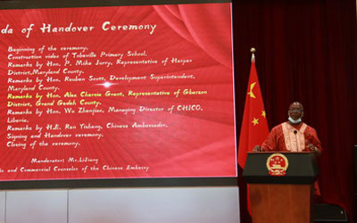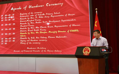 河南国际利比里亚公司总经理吴振蛟致辞表示河南国际将继续关注利教育事业,帮助建设基础设施,履行更多企业社会责任。