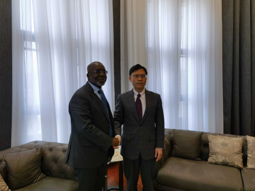 2024年2月13日,驻利比里亚大使尹承武在议会分别拜会利众议长科法、临时参议长劳伦斯。