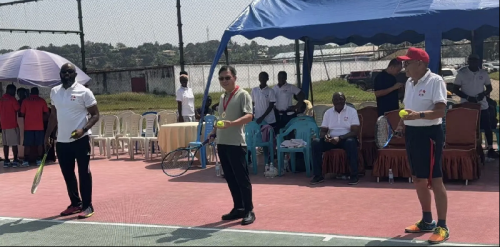 2025年12月20日,驻利比里亚大使尹承武出席利中网球友谊赛开幕式,利网协主席金、利中友协主席谢里夫、副主席胡介国等参加。