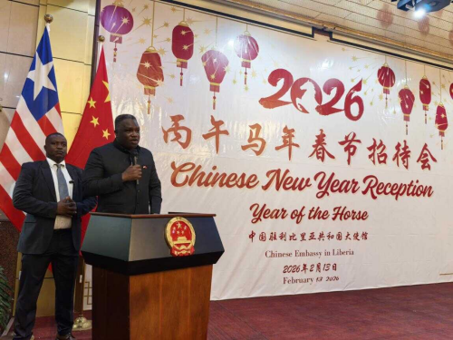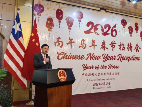2026年2月13日,驻利比里亚使馆举行2026年新春招待会。驻利比里亚大使尹承武利副总统康格、众议长库恩等政要和利各界人士、在利中资机构及华侨华人代表等300余人出席。