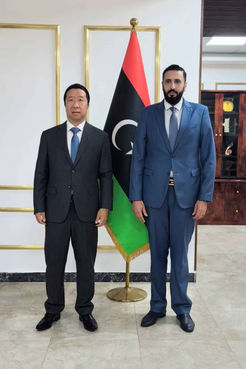 2025年12月3日,驻利比亚使馆临时代办刘健在的黎波里拜会利民族统一政府经贸部次长苏海勒。