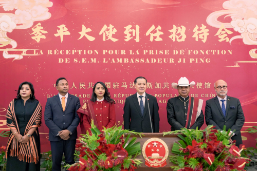 2024年4月25日,驻马达加斯加使馆举办驻马达加斯加大使季平到任招待会。季平大使和马外长拉萨塔分别致辞。马参议长等政界军界高层、社会各界友好人士、多国驻马使节及国际组织、中资机构和华侨华人代表约200人出席。