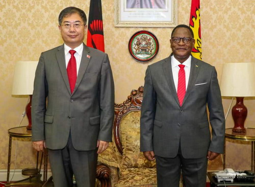 2022年4月13日,驻马拉维大使刘洪洋离任拜会马总统拉扎勒斯·查克维拉。