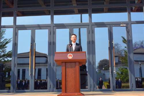 2022年10月1日,驻马拉维使馆举行升国旗仪式,隆重庆祝中华人民共和国成立73周年,驻马拉维大使龙舟出席。使馆全体馆员及在马中资机构、侨社、第九批援马医疗队、孔子学院代表等50余人参加。