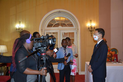 龙大使在捐赠仪式后接受马国家广播电视台、《国民报》、《每日时报》等9家媒体采访。