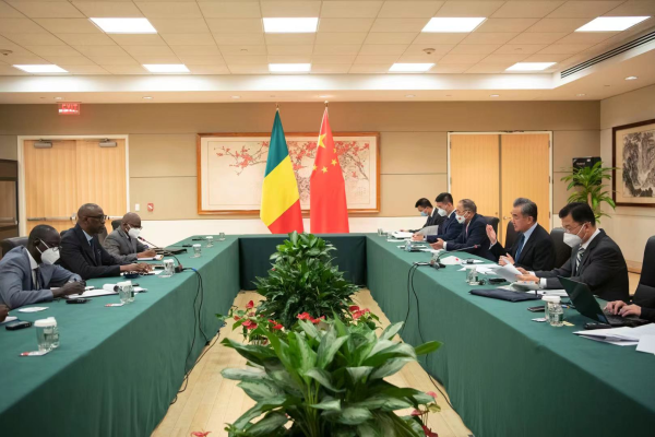 当地时间2022年9月20日,国务委员兼外长王毅在纽约出席联合国大会期间会见马里外长迪奥普。
