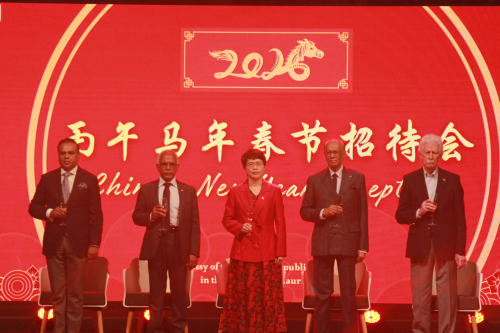 2026年1月21日,驻毛里求斯使馆举行春节招待会。驻毛里求斯毛大使黄世芳,总统戈库尔、总理拉姆古兰、副总统洪利、副总理贝朗热、外长兰富尔等政要和各界代表出席。