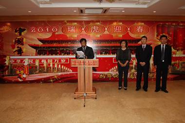 田广凤大使致辞,向旅莫华侨华人、中资机构以及我援外人员送上新春祝福。田大使表示,在过去的一年里,我国政府和各族人民为应对国际金融危机的严重冲击,迎难而上,万众一心,共克时艰,实现了保增长、保民生、保稳定这一目标,中国经济总体回升向好,并为世界经济的复苏做出了贡献。中国与莫桑比克关系深入发展,两国贸易额创历史新高,达到5.17亿美元,同比增长22.5%。两国在落实中非论坛北京峰会举措和胡锦涛主席访莫成果方面取得了重要进展,双边关系得到进一步巩固和加强,两国在政治、经济、文化、教育和科技等领域进行了富有成效的合作。