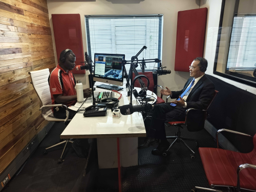 2025年9月3日,驻纳米比亚大使赵卫平接受纳米比亚最大电台鹰电台“中国之声”节目首场直播专访,以中纳建交35周年为主题,回答了主持人提出的涉及中纳关系各类问题。