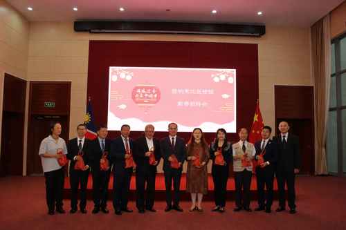 2026年1月23日,驻纳米比亚使馆举行2026年新春招待会,驻纳米比亚大使赵卫平致辞并发放新春暖心包,在纳华侨华人、中资机构、孔子学院、援纳医疗队及留学生代表等近200人参加。