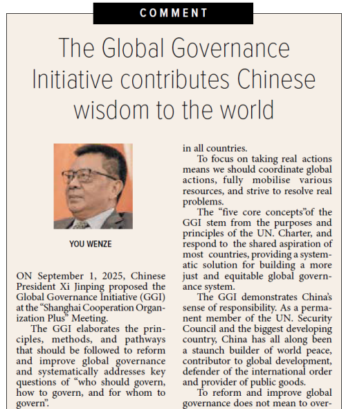 2025年9月23日,驻开普敦总领事尤文泽在南非主流媒体《开普时报》评论栏发表题为《全球治理倡议为世界贡献中国智慧》的署名文章,全文如下: