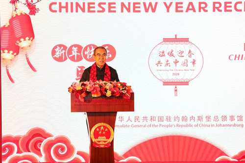 2026年2月9日,驻约翰内斯堡总领馆举办2026年“温暖迎春·共庆中国年”招待会。驻约翰内斯堡总领事潘庆江、豪登省议长莫苏皮耶、自由州省省长代表省执委委员斯芙巴出席并致辞,领区政商学媒、华侨华人、中资机构、领团等各界代表约300人欢聚一堂。