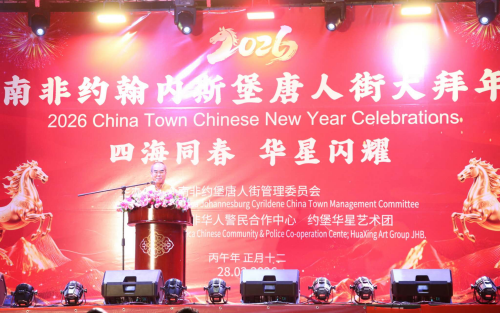 2026年2月28日,驻约翰内斯堡总领事潘庆江出席约堡唐人街大拜年活动,南非警察副总监莫拉拉、约堡市议长玛格丽特等各界友人、旅南侨胞和当地民众上万人参加。
