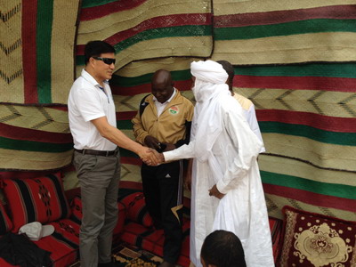 2015年1月4日,应尼日尔军队总监苏莱曼少将邀请,驻尼日尔大使石虎率使馆馆员、援尼军事专家组、中石油代表等前往首都尼亚美郊外图阿雷格族牧民家中做客。