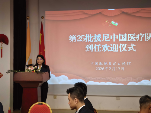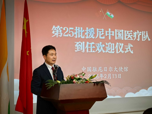 2026年2月13日,驻尼日尔使馆举办仪式欢迎第25批援尼中国医疗队。驻尼日尔大使律桂军出席仪式并致辞。第25批医疗队全体队员、尼日尔华联会会长吴文毅及在尼侨胞、中石油尼日尔公司等中资企业代表150余人参加活动。